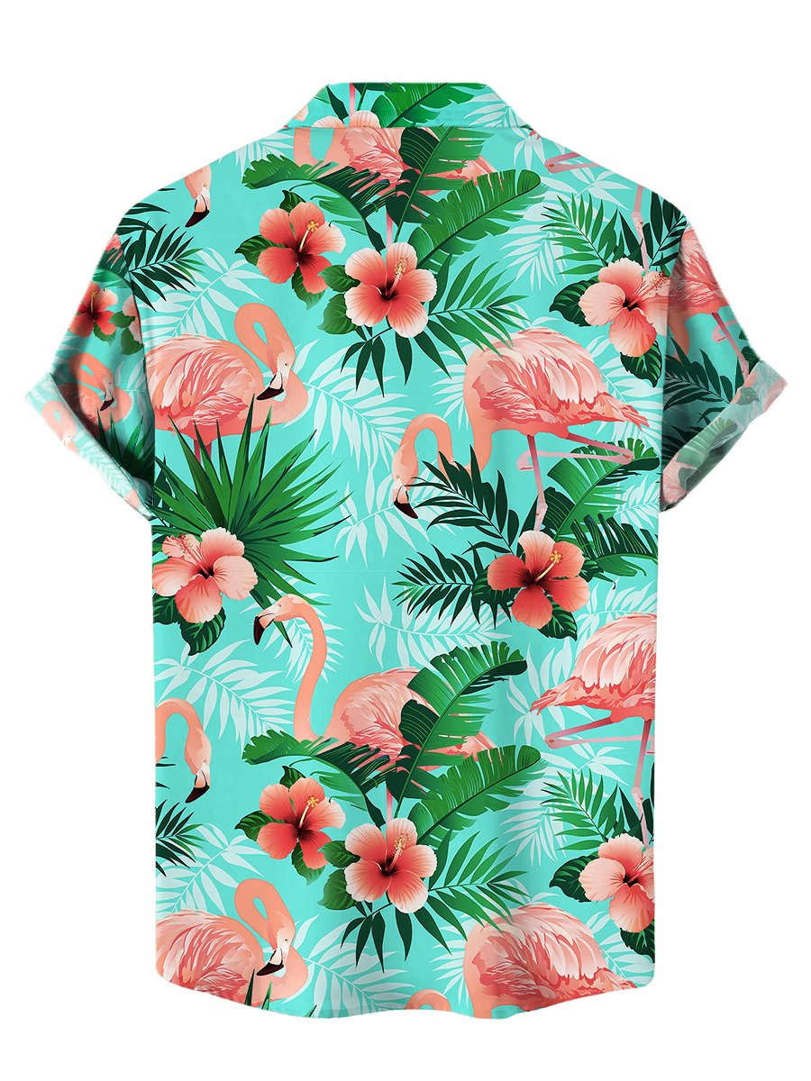 Simple Hawaiian Bamboo and Parrot Print Short Sleeve Shirt
