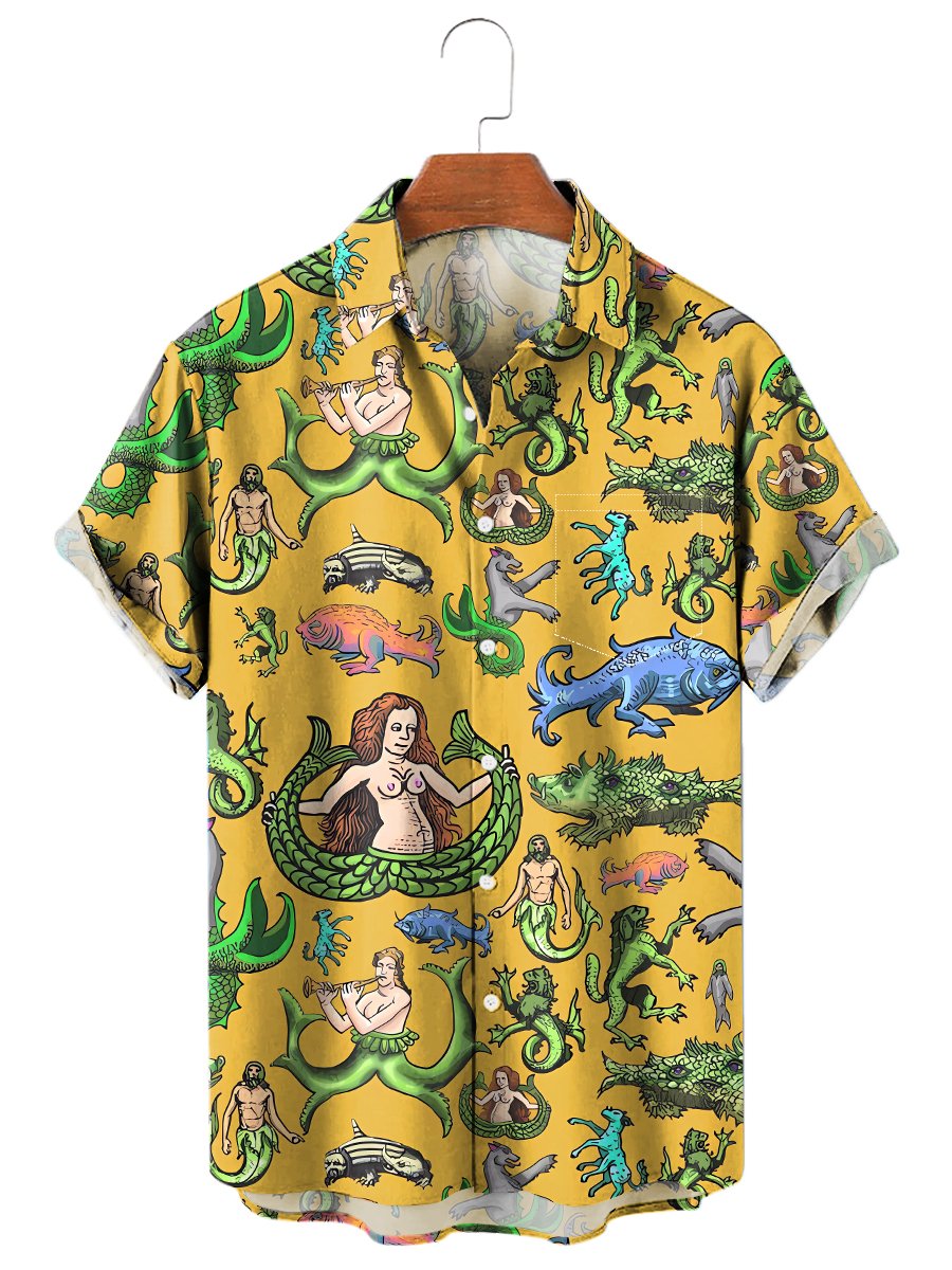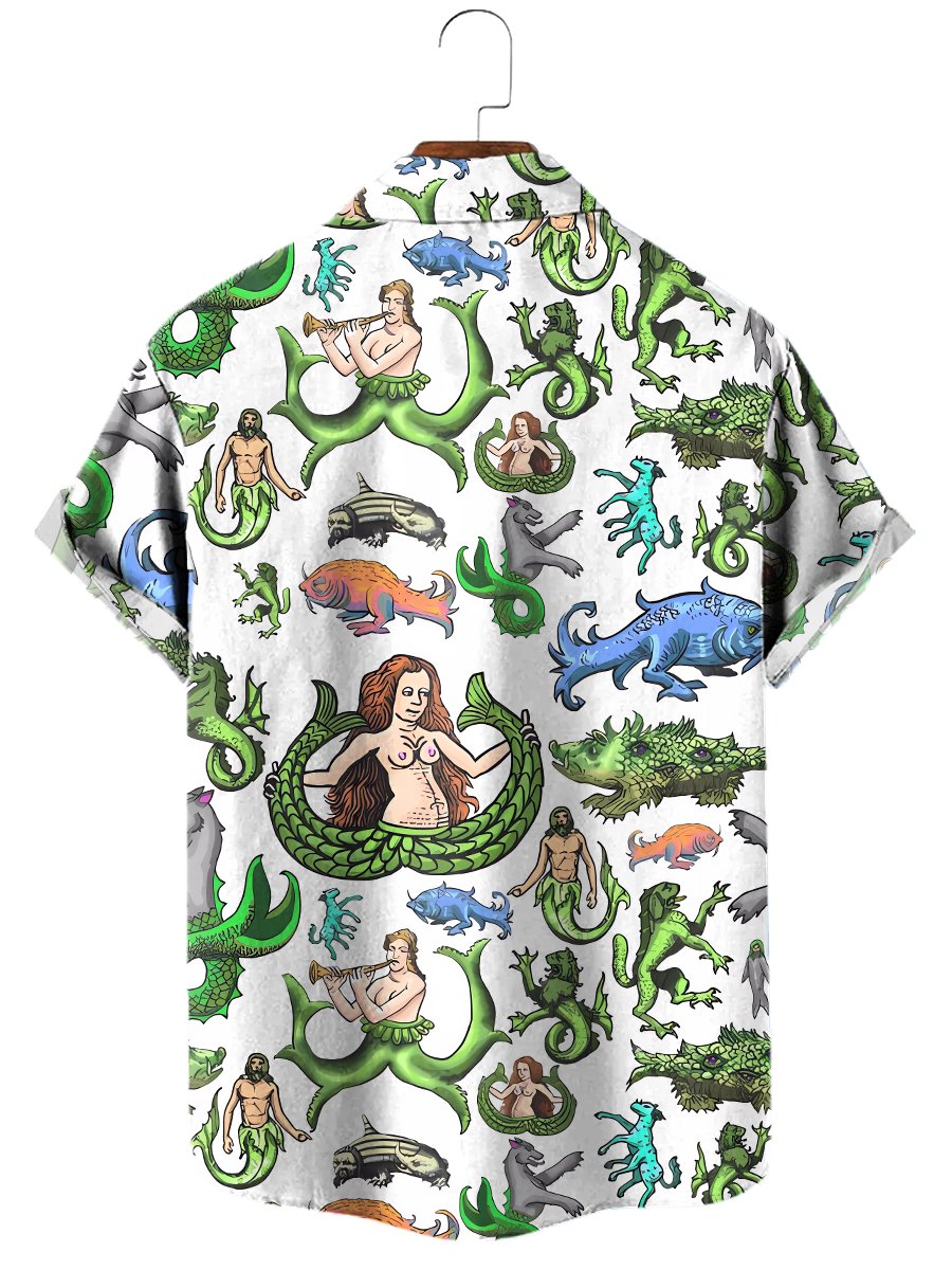 Men's Hawaiian Shirts Medieval Sea Creatures Print Chest Pocket Short Sleeve Shirt