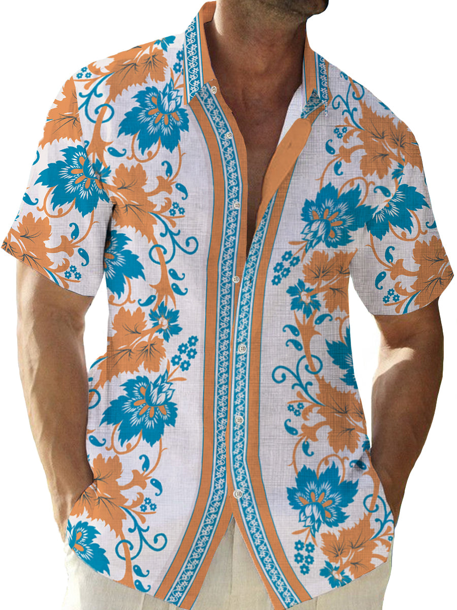 Men's Cotton-Linen Shirts Vintage Floral Print Summer Lightweight Hawaiian Shirts